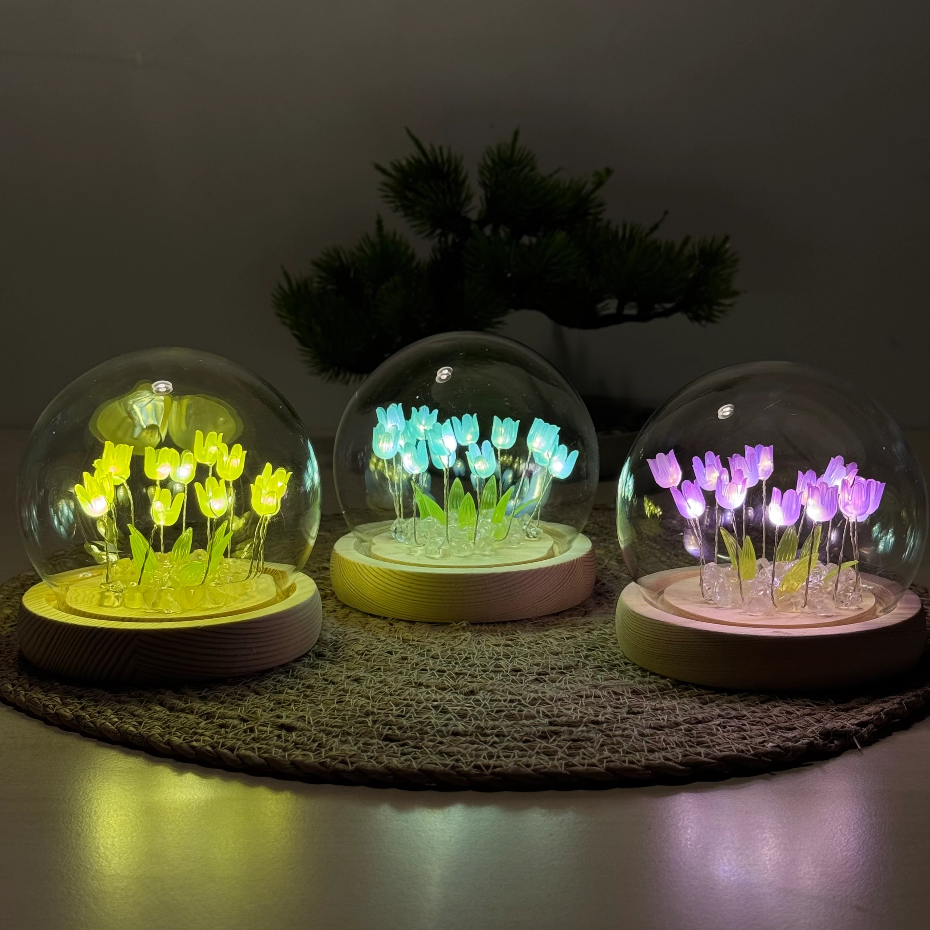 🌷LED Işıklı Laleli Cam Fanus