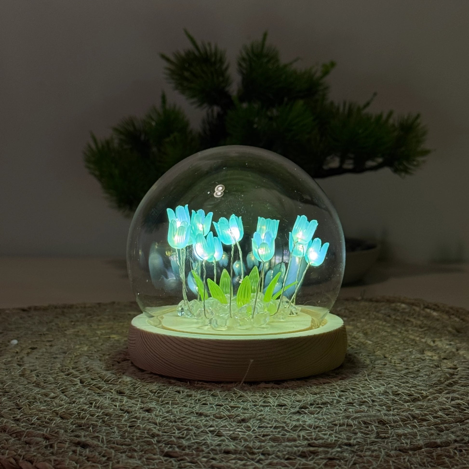 🌷LED Işıklı Laleli Cam Fanus